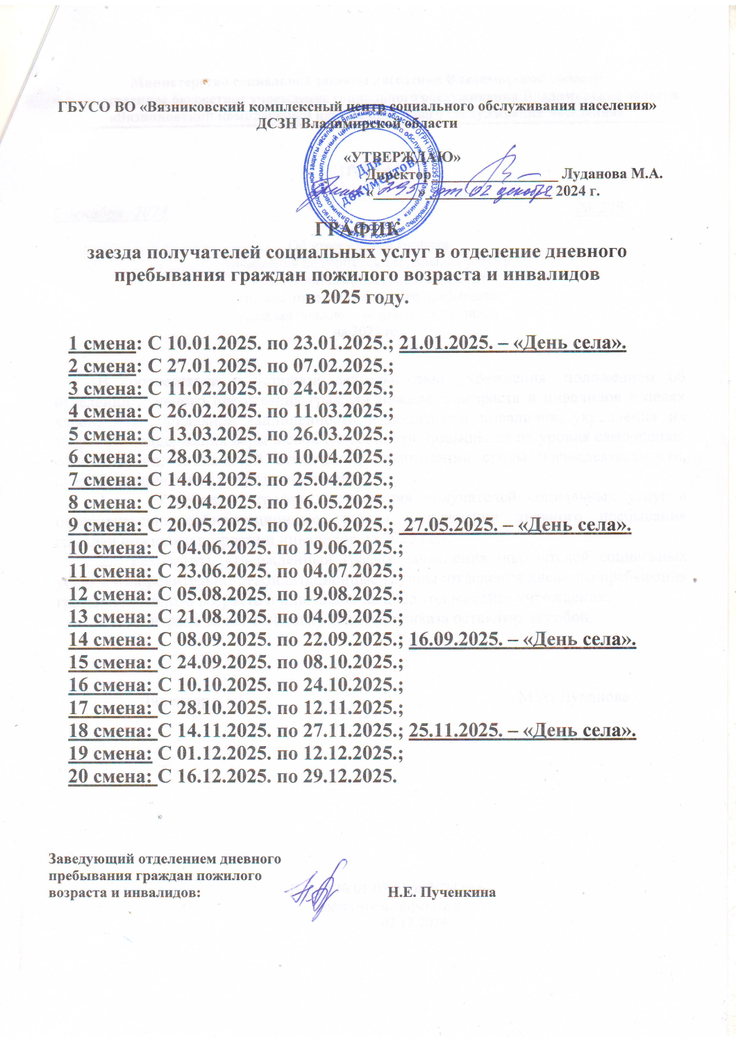График посещений в отделение дневного пребывания граждан пожилого возраста и инвалидов